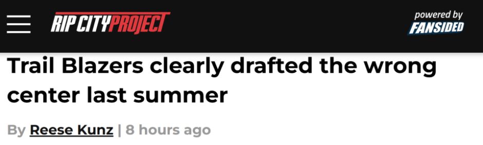 北京时间1月18日,过去两场G联赛,杨瀚森分别创下得分和篮板新高,但回到开拓者,他还是难以进入轮换,并打出高质量的表现。这也让波特兰的一些媒体对他感到失望。今日,波特兰媒体Rip City Project撰文谈及开拓者的选秀决定,标题是《开拓者去年夏天显然选错了中锋》。以下是文章相关内容——