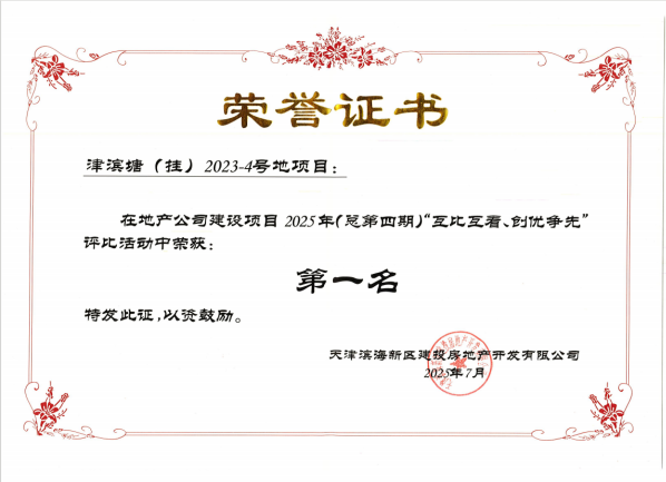 近日,由泰达建安监理的津滨塘(挂)2023-4号地块项目,在建设单位组织的项目“互比互看、创优争先”评比中脱颖而出,勇夺第一名。此次评比覆盖进度、安全、质量、内业等多维度关键指标,泰达建安凭借专业的监理实力与项目管控能力,赢得各项目所有参建单位的高度认可。